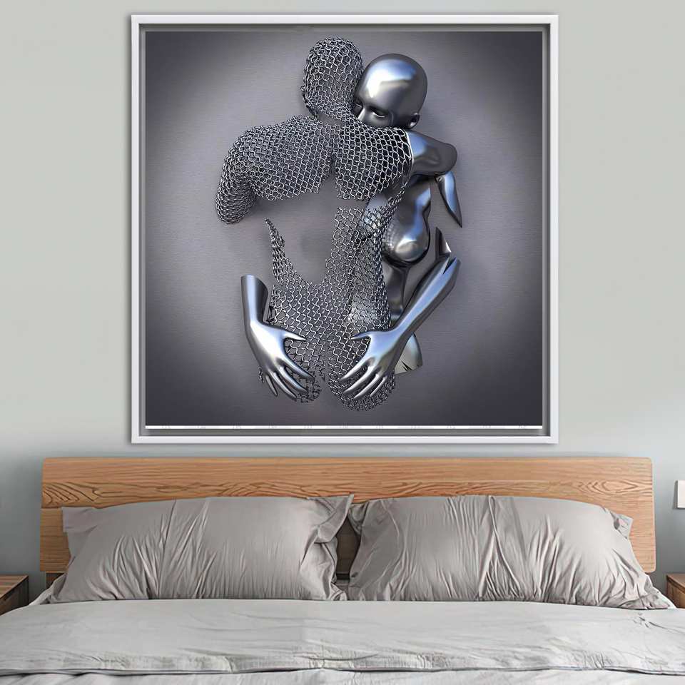 Elegant Romantic Couple Print Canvas Art - Modern Lover Gift,White Framed