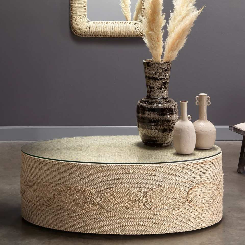 Elegant Rope Coffee Table With Circular Shape And Wooden Top For Modern Home Office Lounge Furniture Use