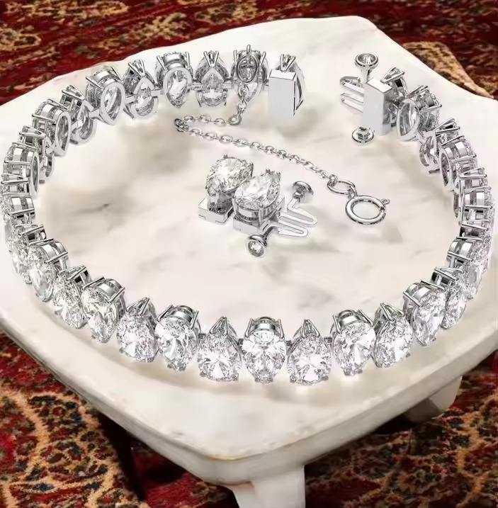 Elegant Rose Gold Lab-Grown Diamond Tennis Bracelet with Pear-Shaped Diamond for Anniversary or Birthday Celebrations Gift