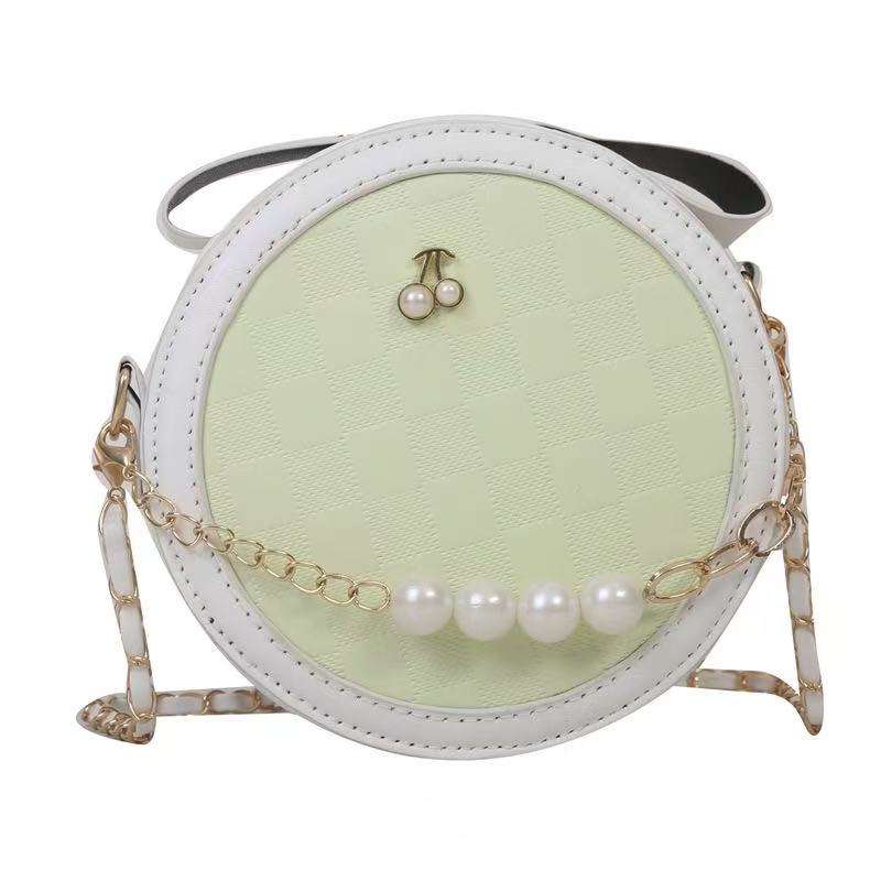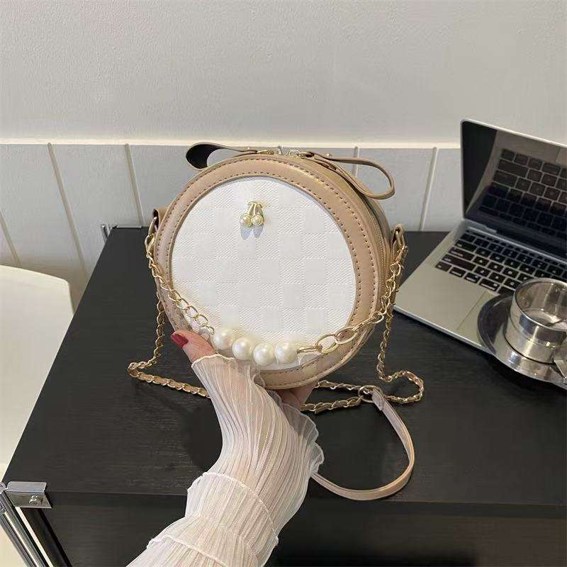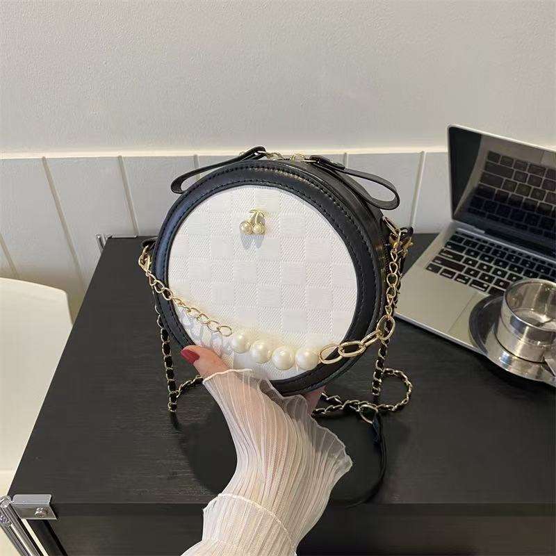 Elegant Round Crossbody Bag with Pearl and Two Tone Design