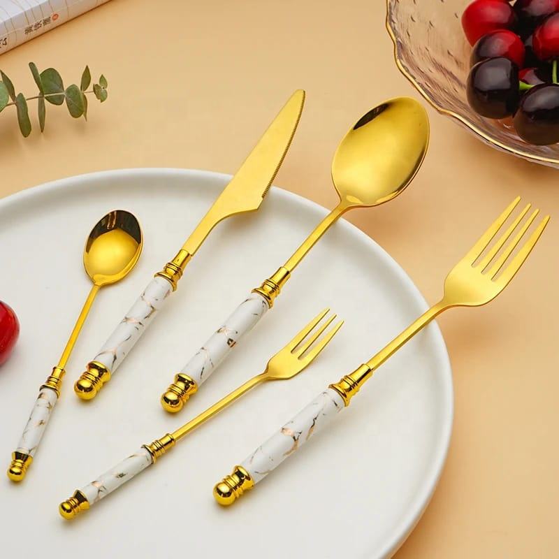Elegant Royal Design Cutlery Flatware Set Resin Handle Stainless Steel with Gold Finish for Weddings and Special Occasions