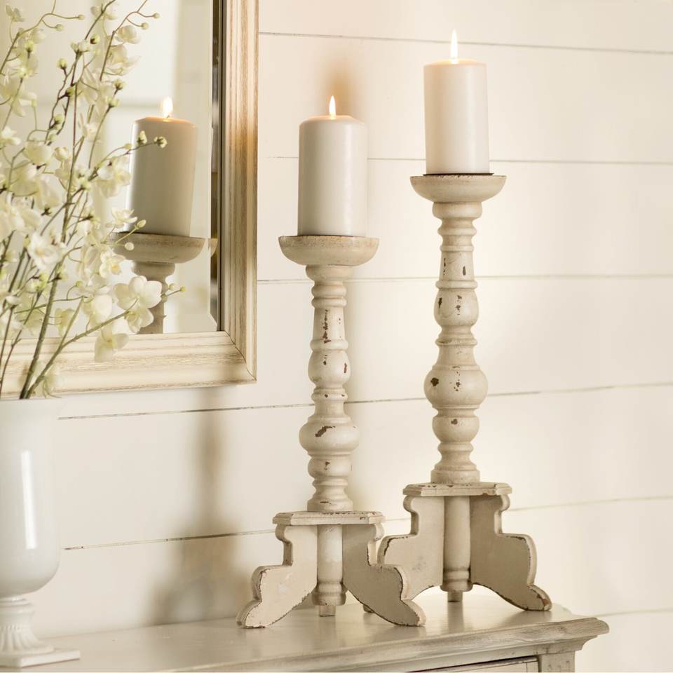 Elegant Rustic Wooden Candlesticks Two Piece Set with Durable Mango Wood Base Perfect for Vintage Table Styling