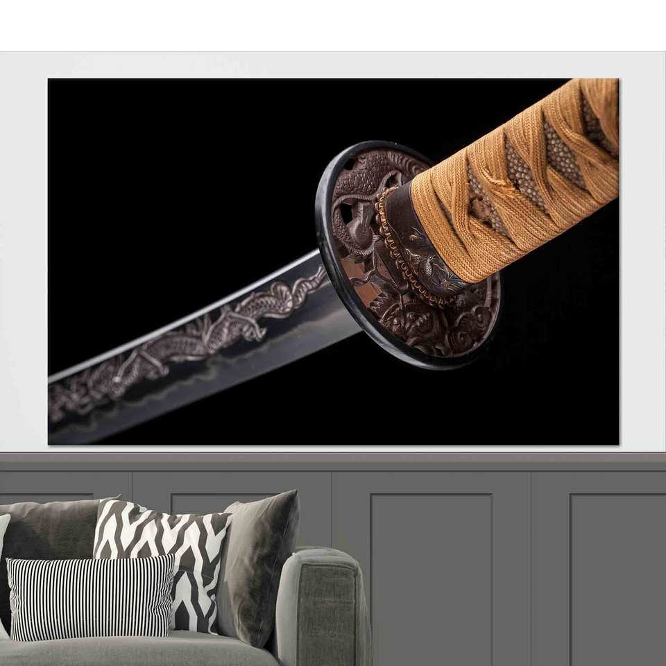 Elegant Samurai Sword Canvas Art: Katana Blade Ornament, Gold Frame Print,WRAPPED CANVAS