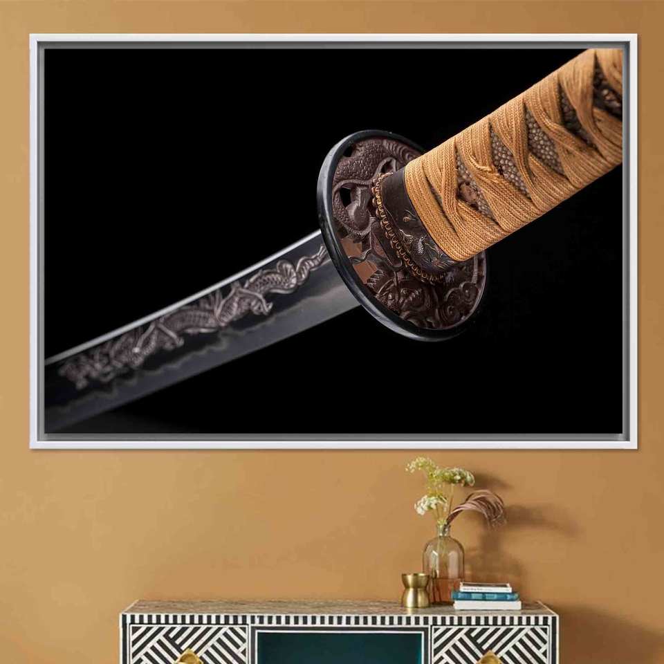 Elegant Samurai Sword Canvas Art: Katana Print in Gold Frame,WHITE FRAMED CANVAS
