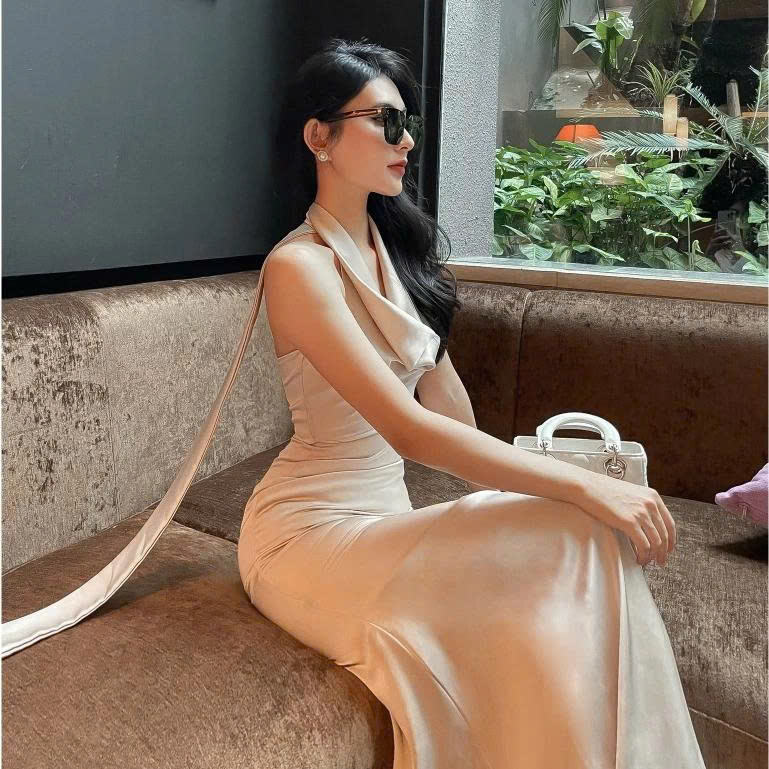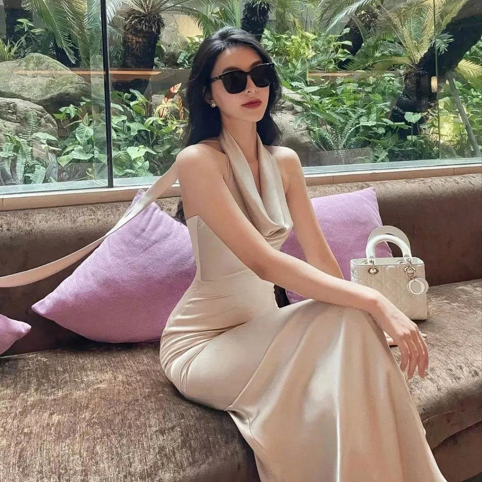 Elegant Satin Evening Dress Long Mermaid Gown Halter Neck Tie Backless Formal Party Dress Women Prom Bridesmaid