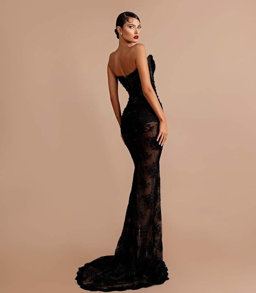 Elegant Satin Prom Dress Spaghetti Straps Flowing Skirt Party Style Decorated Lace Crystals Flowers Patterns Anti-Static Pearls