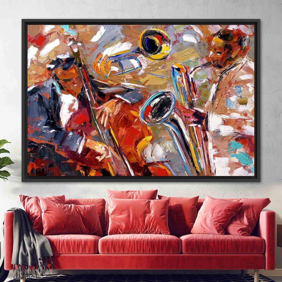 Elegant Saxophone Printed Canvas: Jazz Music Wall Decor,1P:Black Framed