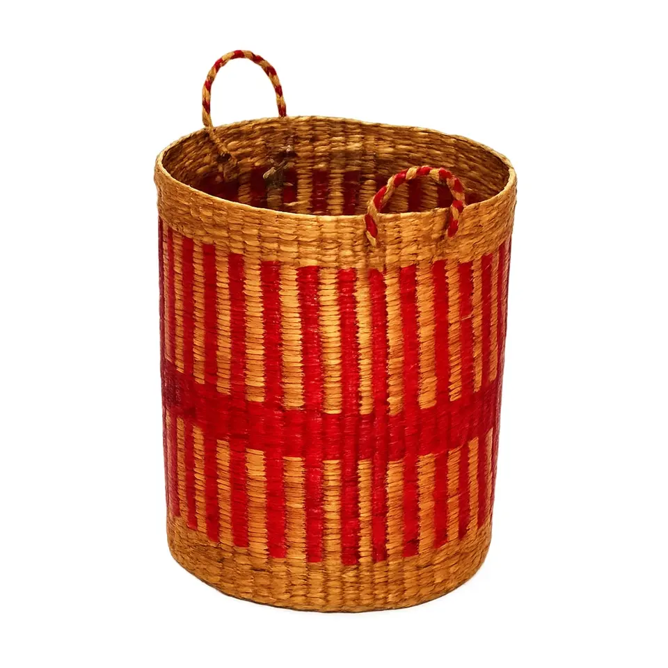 Elegant Scarlet Stripes Wicker Laundry Basket with Water Hyacinth Design Organizing Home Essentials with Style