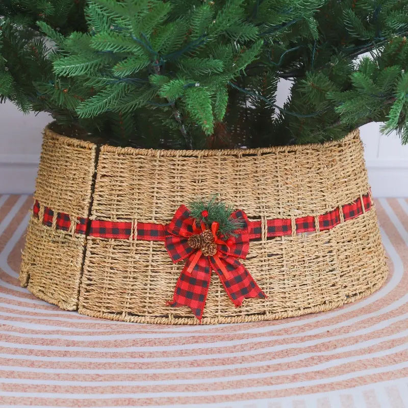 Elegant Seagrass Christmas Tree Collar Handwoven Wicker Tree Skirt High Quality OEM ODM Factory Wholesale