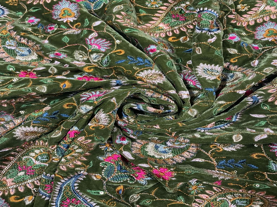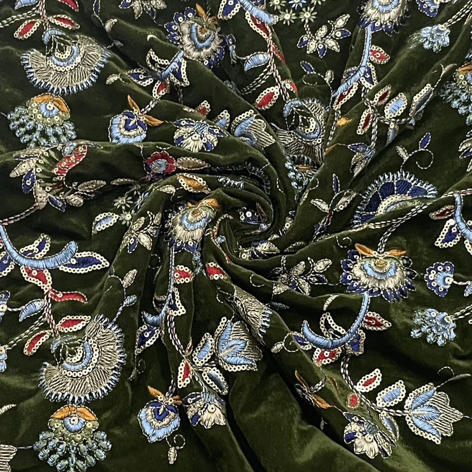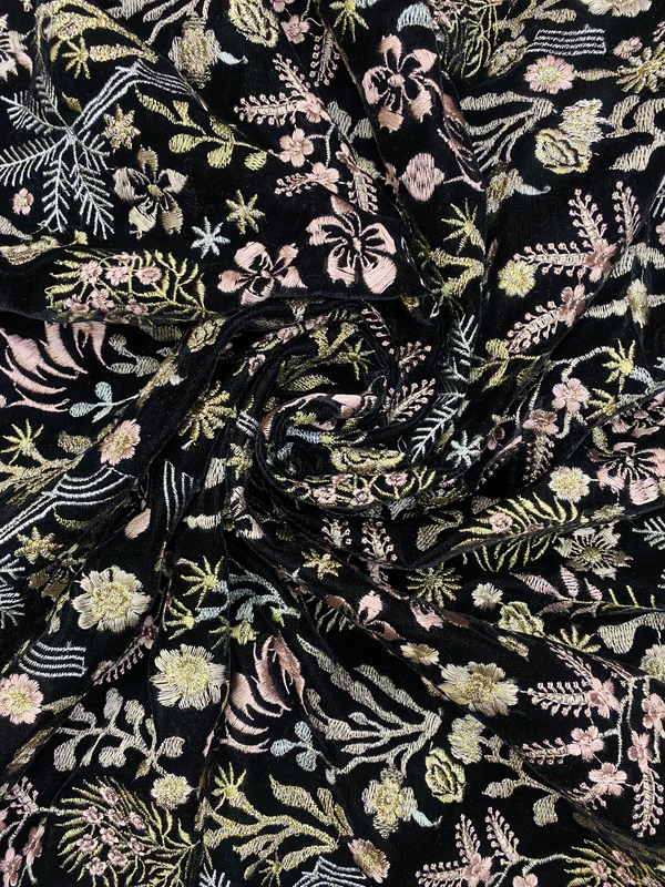 Elegant Sequin Embroidered Jacquard Velvet Fabric Luxury Evening Gowns Wedding Dresses and Exclusive Special Occasion Fashion