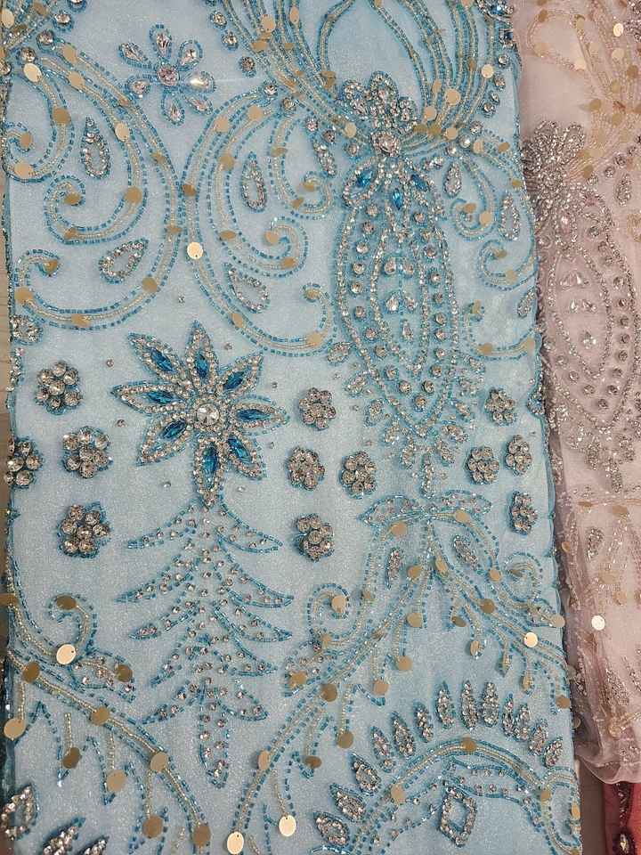 Elegant Sequin Lace Beading Stretch Fabric Bridal Luxury for Wedding