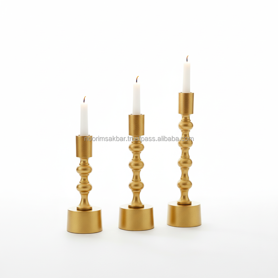 Elegant Set 3 Nickel Silver Black Metal Candle Holders Customizable Print Christmas Table Decor for Wedding Religious Ceremonies