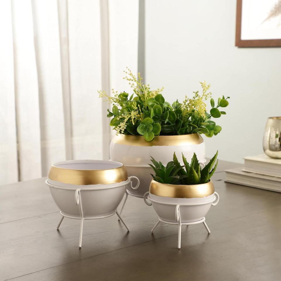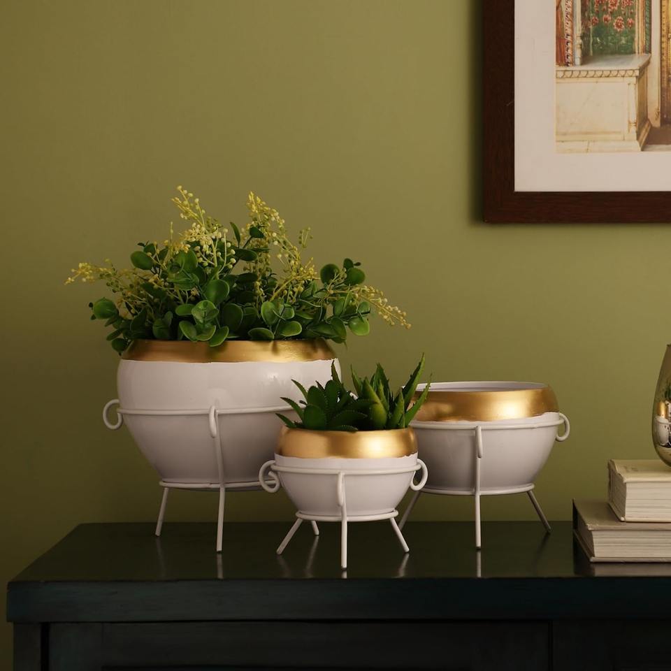 Elegant Set Of 3 Decorative Planters Ideal For Indoor Greenery Home Office Balcony And Stylish Floor Or Table Display From India