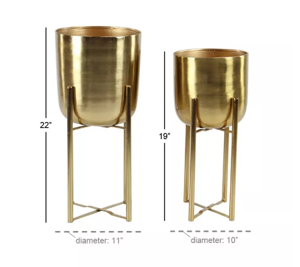Elegant Set of 2 Large Round Iron Planters with Outdoor Decorative Stands Metallic Design for Flower Pot & Planter