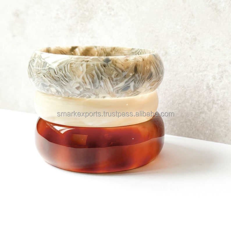 Elegant Set of 3 Resin Bangles in Brown Beige and Amber Tones Fashionable Kada Bracelets for Women and Girls