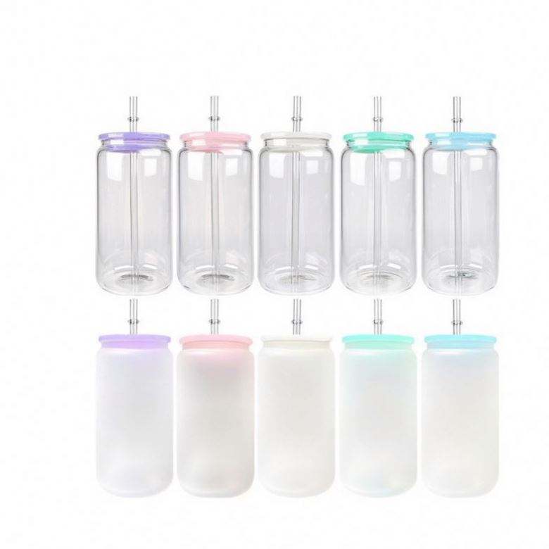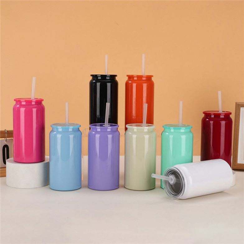 Elegant Shaped Drinking Plastic 16Oz Colored Plastic Solid Glossy Can With Pp Lids for UV DTF Transfer