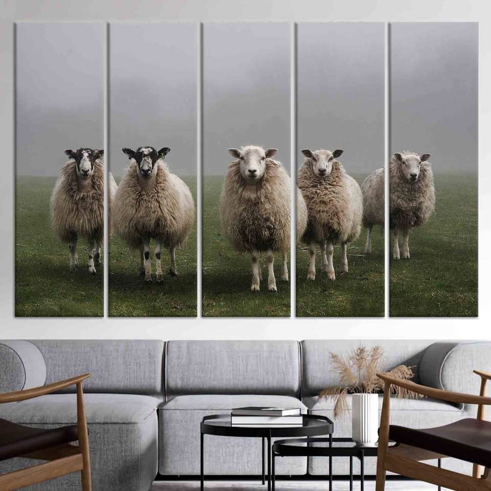 Elegant Sheep Photo Print: Farmhouse Black Framed Canvas Art,SET OF 5 CANVAS