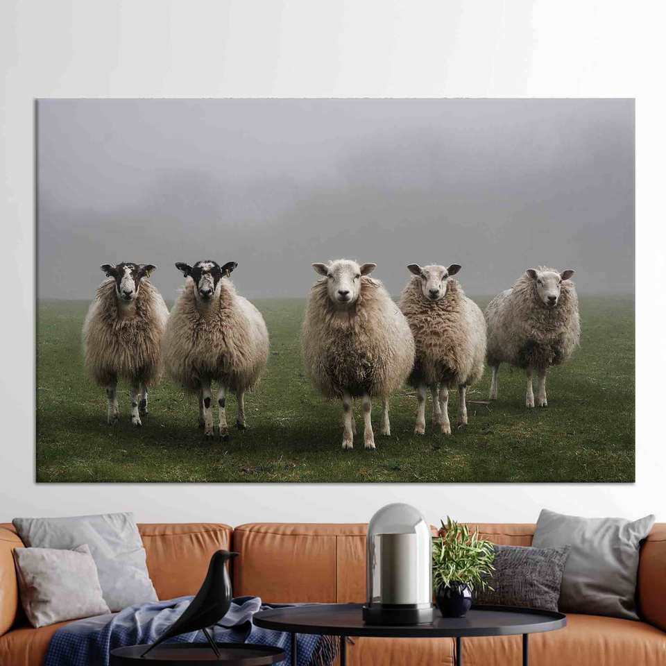 Elegant Sheep Print Canvas Art: Farmhouse Black Framed Decor,WRAPPED CANVAS