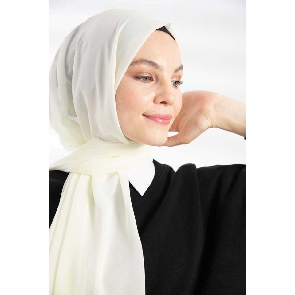 Elegant Silk Chiffon Shawl Ivory Long Women's Scarf Lightweight Fashion Accessory