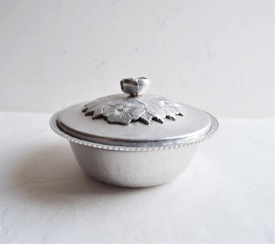 Elegant Silver Casserole with Floral Design Lid | Designer Hammered Finish Serveware for Modern Kitchen & Dining From India