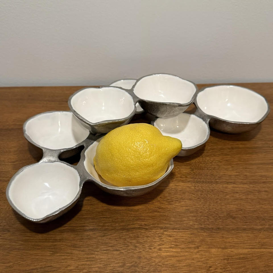 Elegant Silver-Edged Metal Bowl Set for Dips Sauces or Snacks Modern Serving Dish