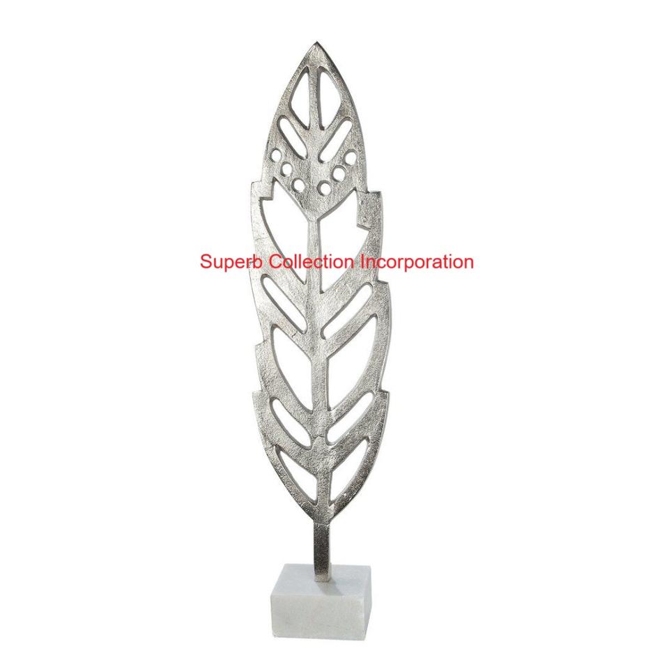Elegant Silver Finish Metal Feather Sculpture With Sturdy Base Luxury Home Decor Tabletop Ornament For Living Room And Gift