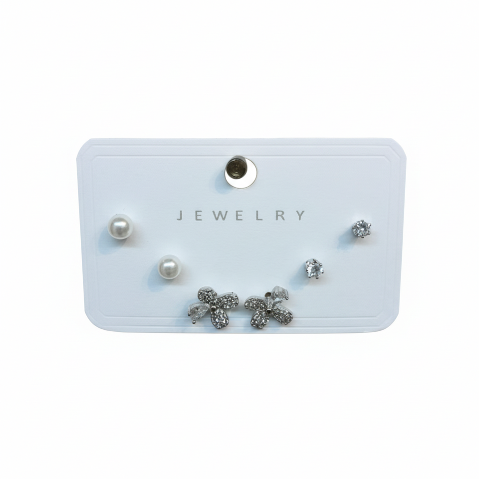 Elegant Silver Flower Stud Earrings With Faux Pearl Classic Women's Jewelry For Everyday Wear