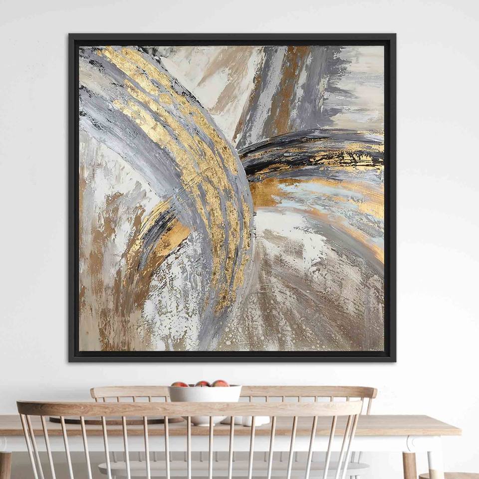 Elegant Silver & Gold Marble Print Canvas - Modern Wall Art,BLACK FRAMED CANVAS