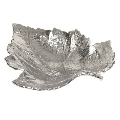 Elegant Silver Nickel Leaf Shape Serving Tray Home Decor Table Centerpiece-Metal Art Trays