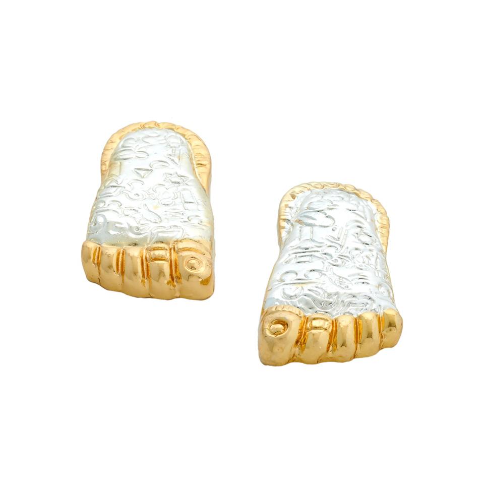 Elegant Silver Plated Charan Paduka With Golden Border For Mandir Decoration Home Puja Spiritual Worship And Festival Gift Item