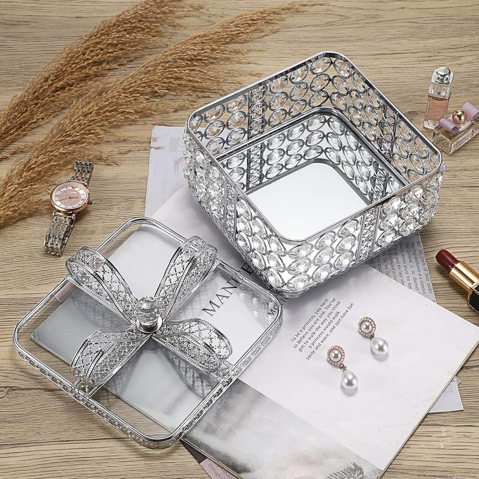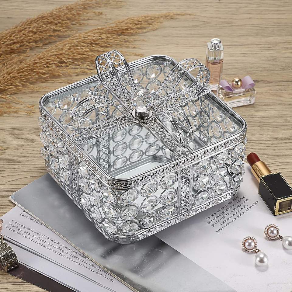 Elegant Silver-Plated Crystal Gift Box with Decorative Bow for Wedding Favors and Bridal Gifts