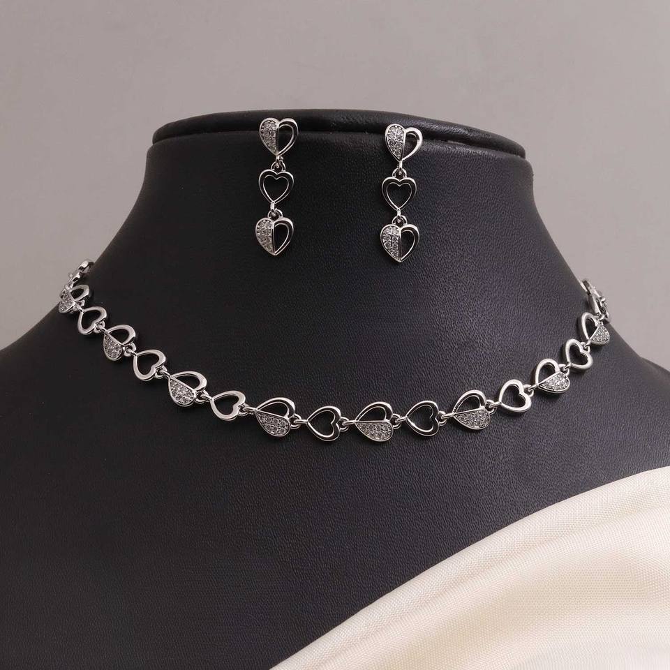 Elegant Silver Plated Heart Necklace and Earrings Set High Quality Alloy Infused Shiny Clear Cubic Zirconia Stones for Gift