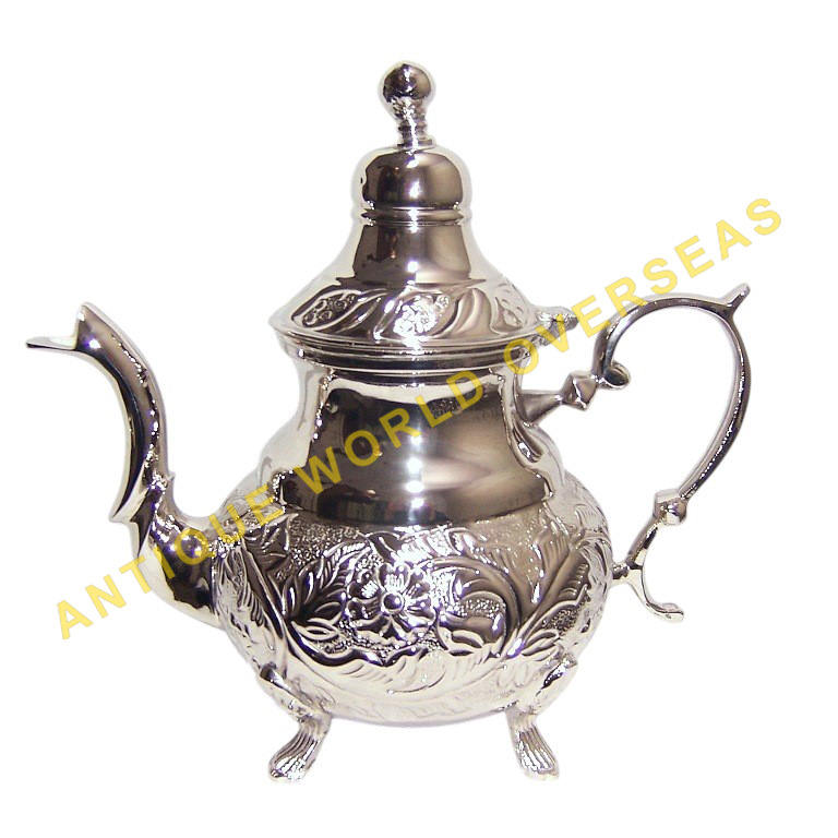 Elegant Silver Plated Moroccan Teapot Intricate Hand Engraved Leaves Decorative Arabic Tea Kettle For Serving And Display