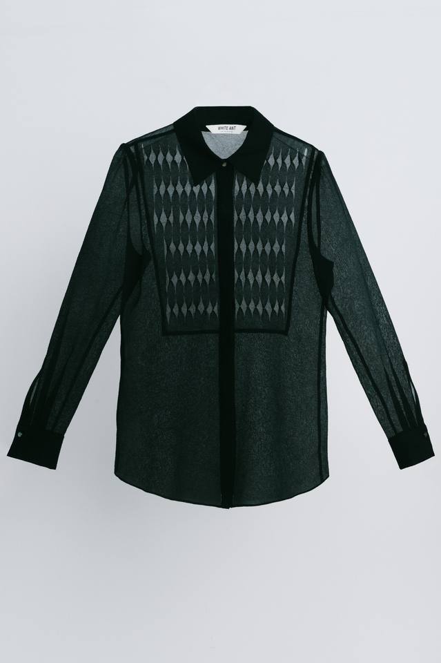 Elegant Simple Long-sleeved Loose-fitting Shirt Women Shirt Design ROSA POINTED SHIRT Sheer Triacetate 60% Acetate 40% Polyester