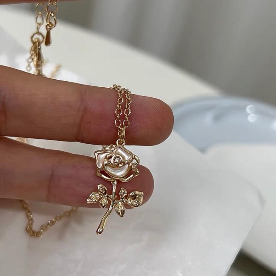Elegant Simple Rose Gentle Mother Pearl Rose Branch Pendant Necklace for Women Light Luxury Ins Niche Feeling Collarbone Chain