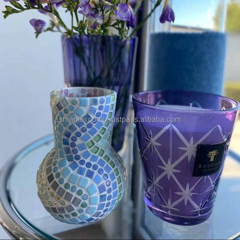 Elegant Sky Blue Grey and Green Mosaic Vase Handcrafted for Best Quality Home Decor Perfect for Stylish Interior and Unique Gift