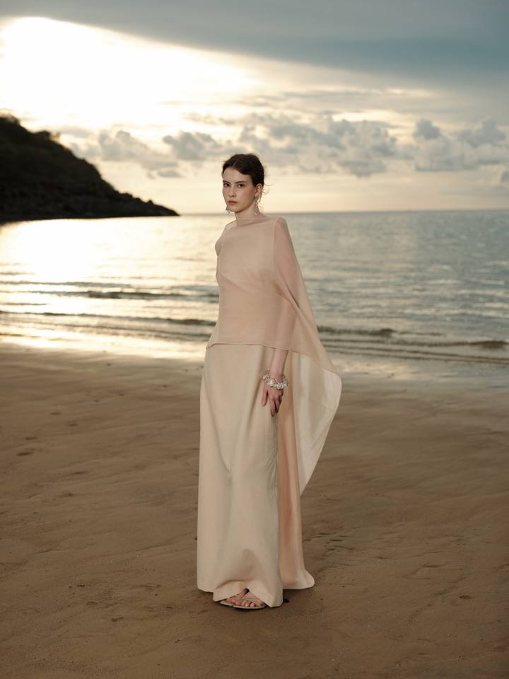Elegant Sleeveless Long Dresses Women MARGOT OPEN- BACK DRESS For Summer Sand Jacquard Fabric Women's Clothing Wholesale