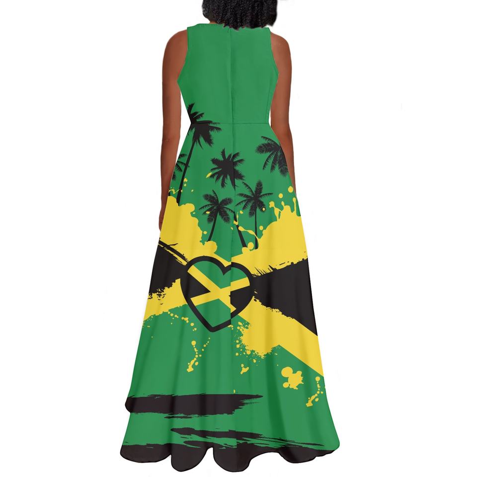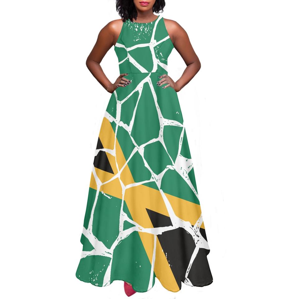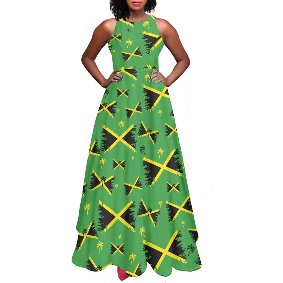 Elegant Sleeveless Pacific Islands Green Jamaica Flag Print Tank Top Dress for Women Custom Prints Wholesale Jamaican Clothing