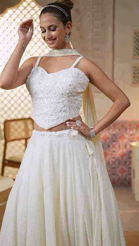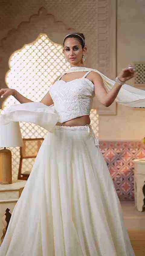 Elegant Sleeveless Sweetheart Neckline Blouse and Matching Dupatta for Women White Embroidered Lehenga Choli with