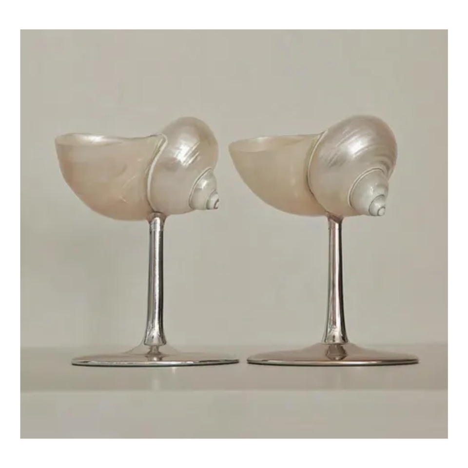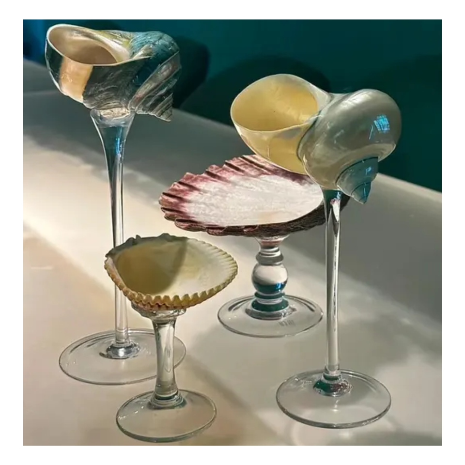 Elegant Snail Cup Wine Glasses with Polished Shells, Natural Snail Shell Martini Glasses: Beautifully Crafted Glassware