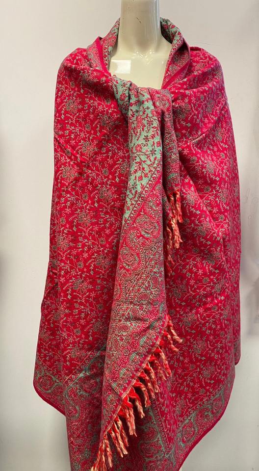 Elegant Soft Polyester Velvet Pink Kashmiri Inspired Winter Shawl for Women with Solid Embroidery Warm & Stylish Breathable