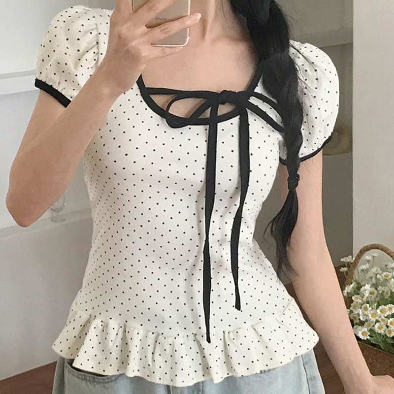 Elegant Solid Breathable Knitted Collarless Blouse with Tie Detail & Lace Trim-Slim Fit Women's Fashion Top