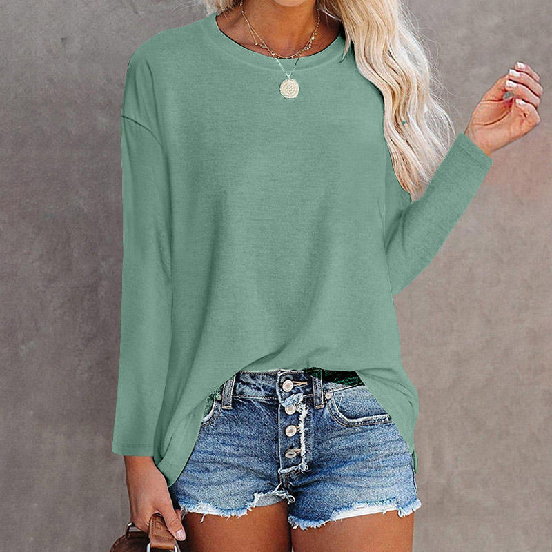 Elegant Solid Cotton Long Sleeve T-shirts Women Clothes O Neck All Match Tops Female T-shirt for men