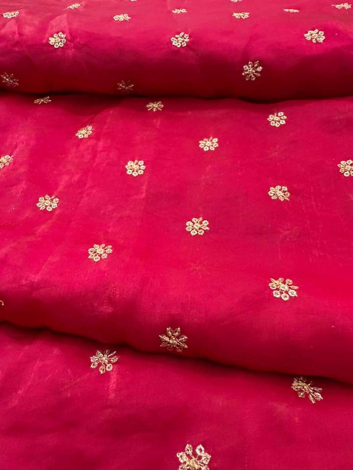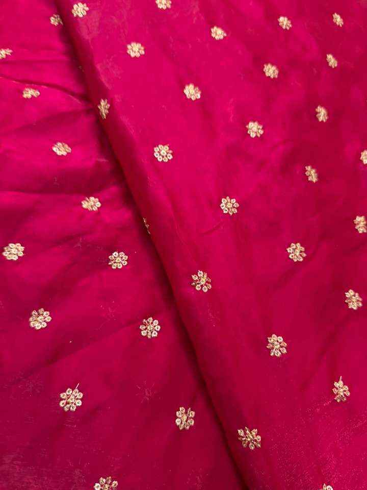 Elegant Space Silk Gold Jari Butti Embroidery Fabric for Boutique Bridal and Traditional Ethnic Wear Gowns Sarees Lehengas