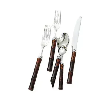 "Elegant Stainless Steel Cutlery Spoon Set with Bamboo Wooden Handle Premium Restaurant Flatware Silverware Utensils for Kitchen