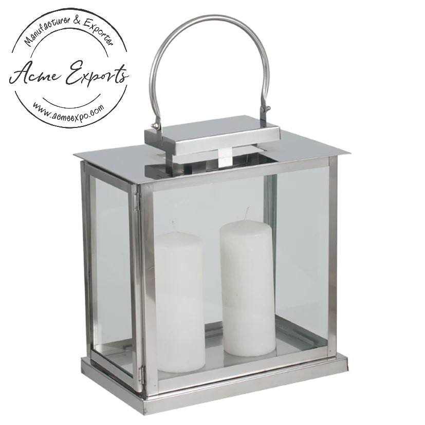 Elegant Stainless Steel Glass Lantern Candle Holder Modern Farmhouse Decor Tabletop Patio Accent