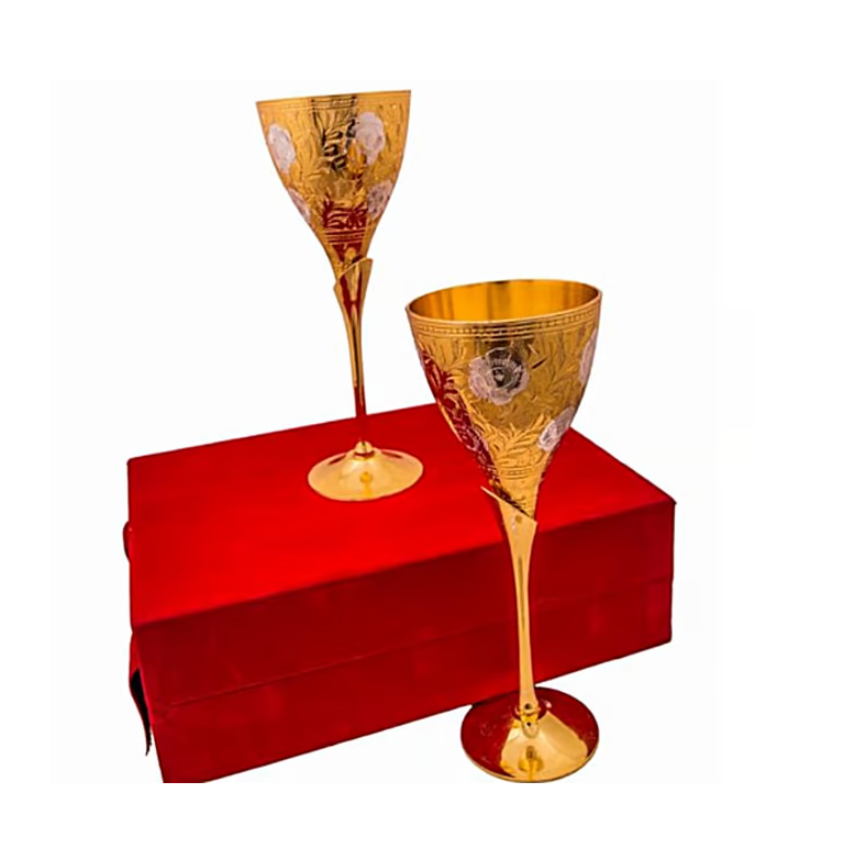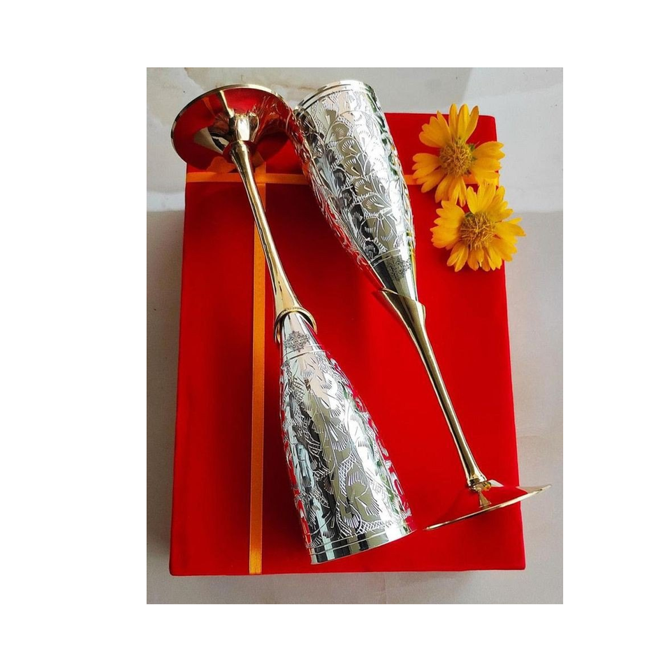 Elegant Stainless Steel Wine Glass Home Party Drinking Hammered Design Brass Stem Designer Crafts Excellent