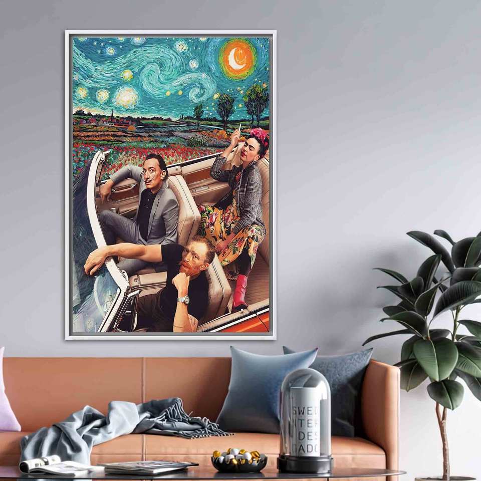 Elegant Starry Night Printed Canvas Art - Van Gogh Masterpiece,White Framed