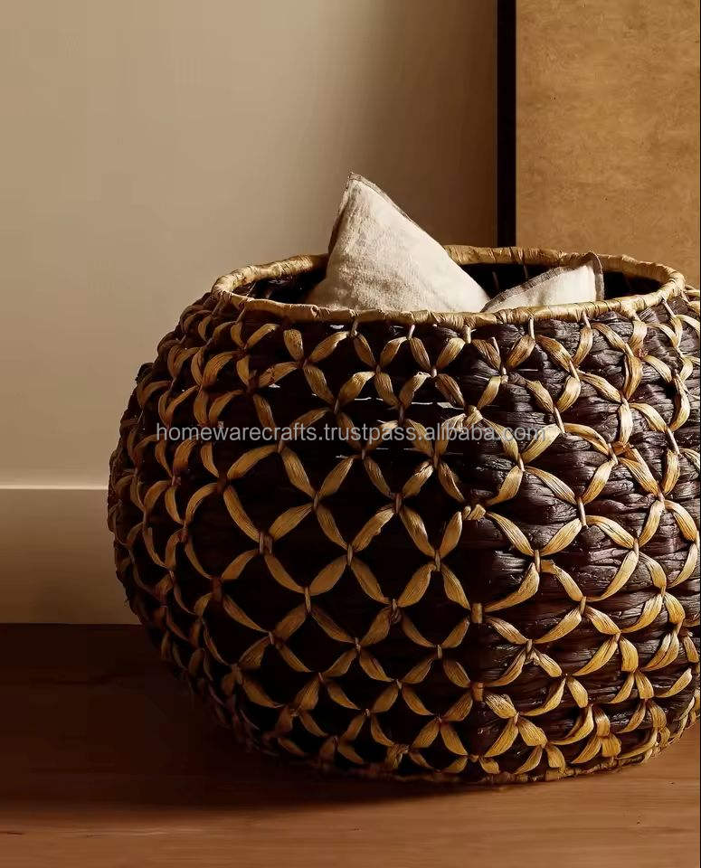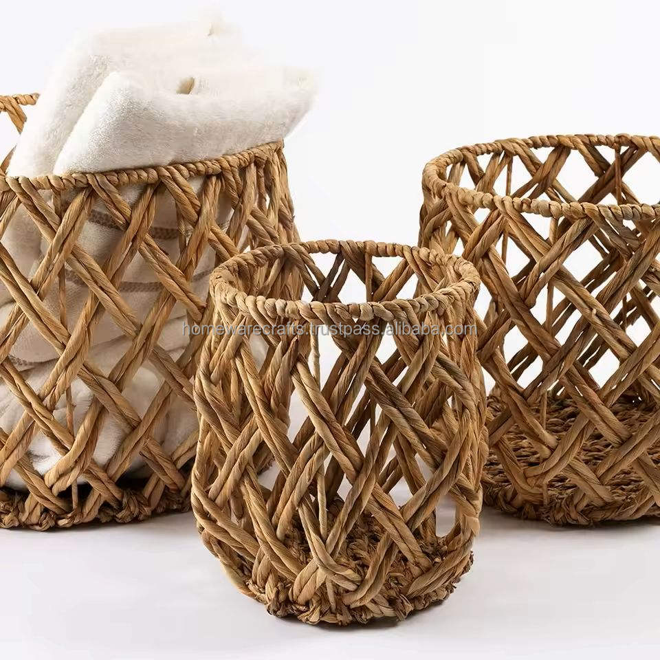 Elegant Straw Basket Natural Water Hyacinth Home Storage Container Wholesale Lightweight Durable Crafted in Vietnam