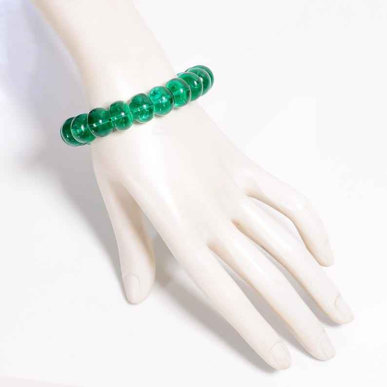 Elegant Stream Lab Grown Emerald Beads Bracelet Zambian Green Premium Exclusive Grade Luxe Finish Smooth Bold Detail Classic